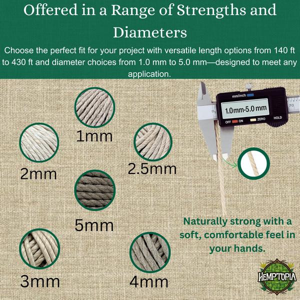 This all natural 1mm 100% hemp twine is great for making jewelry, beading, and can be used as baker's twine. It is smooth against the skin and has a test strength of 20 lbs. Made from hemp, the strongest natural fiber on Earth.